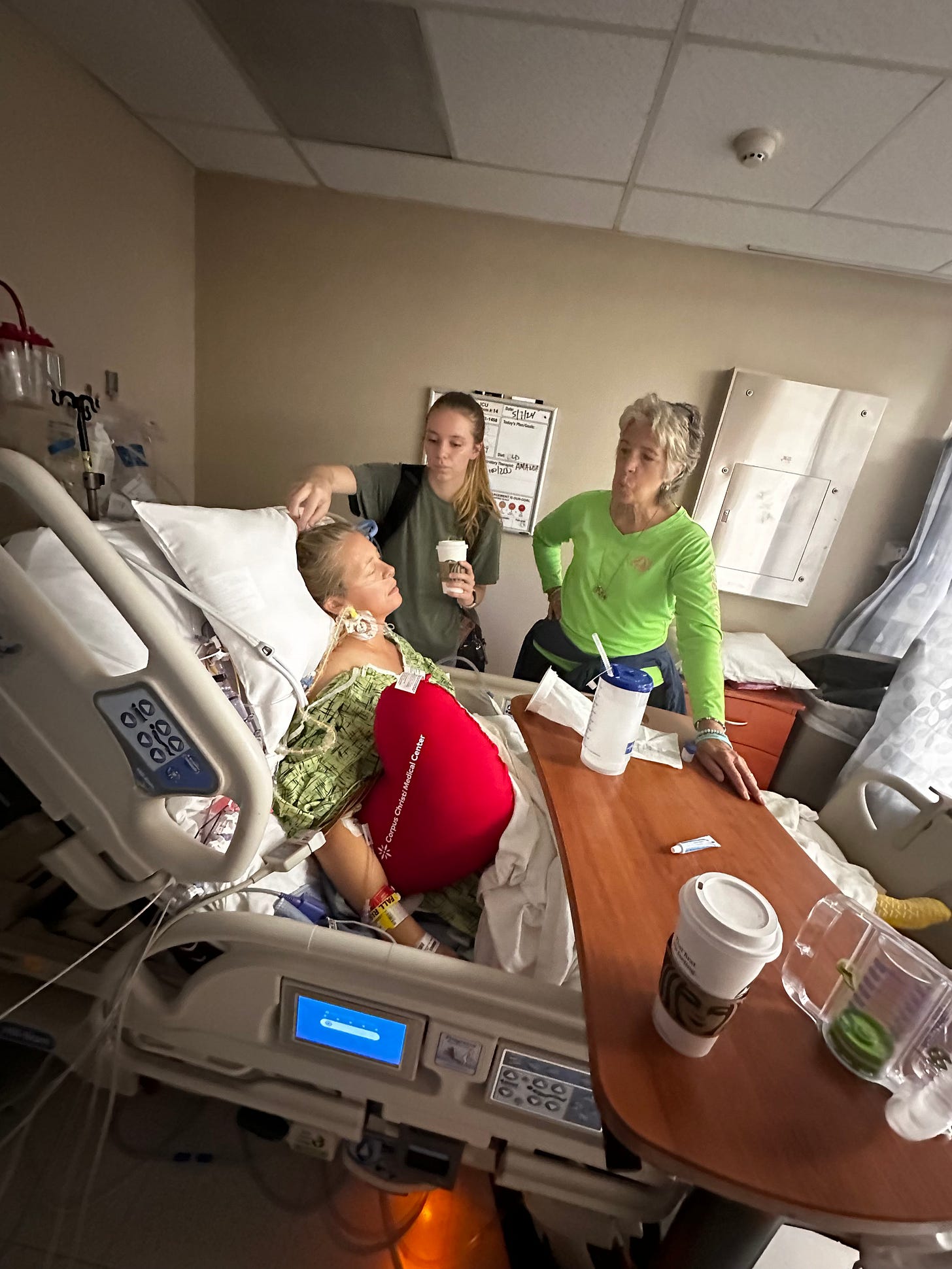 I clearly remember adjusting my shoulders, lowering my head, mentally centering myself, and breathing. I left everything in the ICU behind. I couldn’t talk to anyone, look, listen, or smile. I just went inside my chest, to my heart, and stayed there. I breathed in and out, visualizing oxygen going to my heart. I worked on clearing my mind, practiced box breathing, named things I was thankful for, and then repeated it. It took the edge off the pain. At some point, I was able to bring myself back up and interact in short amounts of time with my family before going back inside myself and sending oxygen to the pain again. I lost track of time.